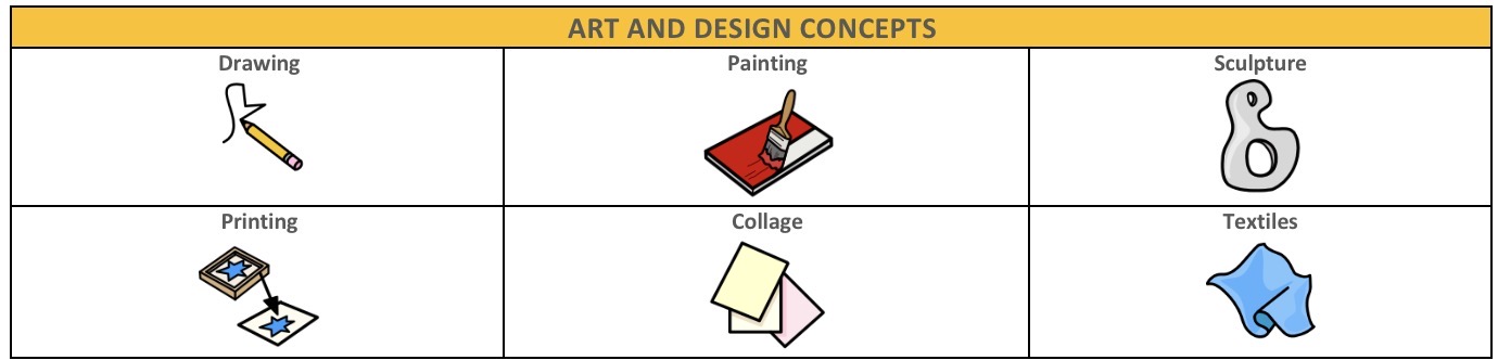 As well as gaining essential knowledge, being an artist is about putting the skills into practice. With carefully sequenced disciplinary knowledge, pupils will gain skills in the below artistic concepts.