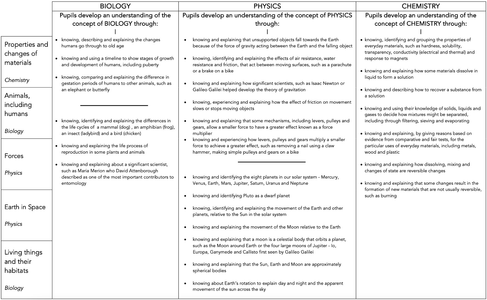 The science curriculum is coherently planned and carefully sequenced to ensure clear progression in knowledge and skills from Early Years through to Year 6. Learning is structured around the key scientific disciplines of biology, chemistry and physics, with substantive and disciplinary knowledge explicitly taught.