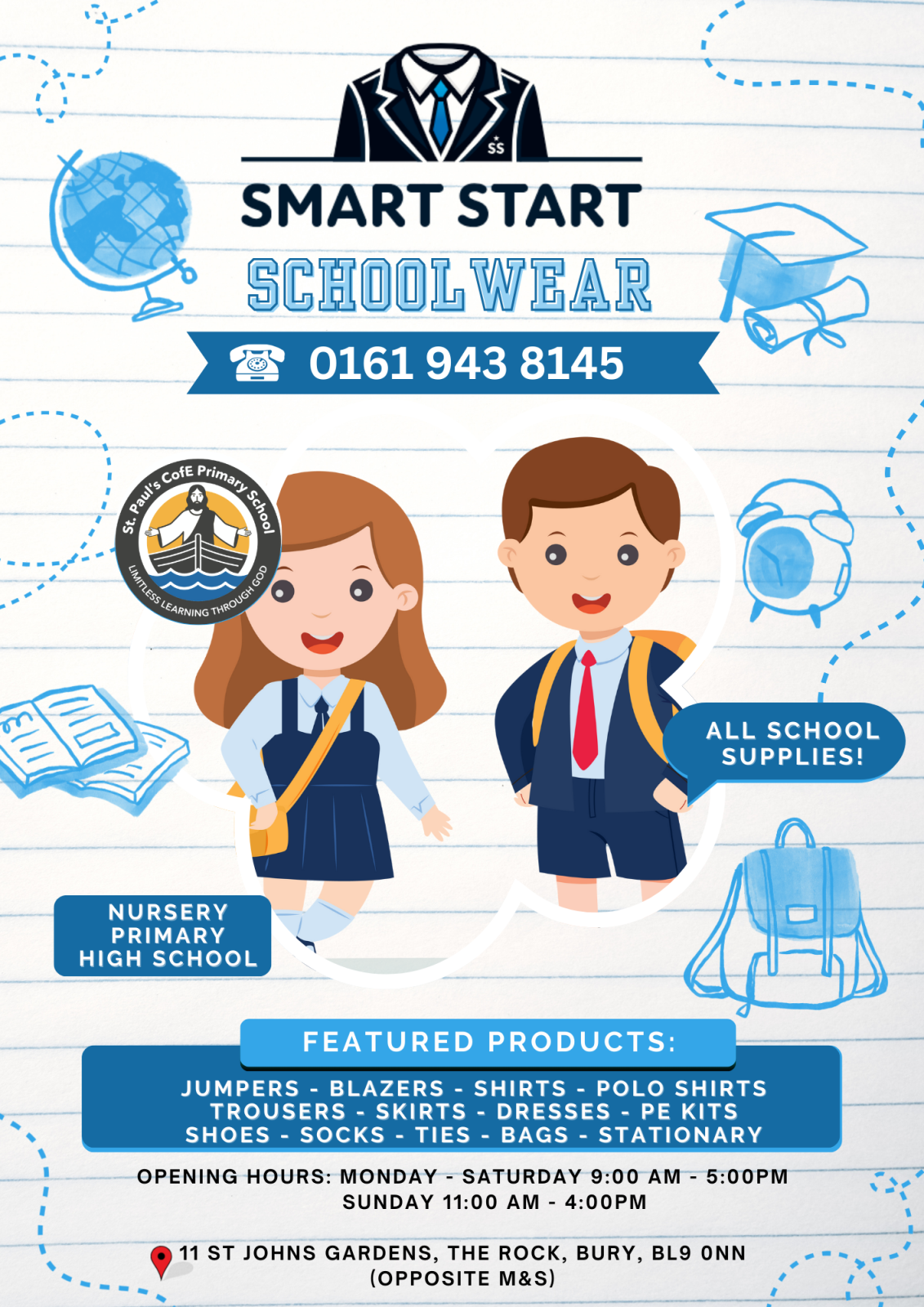 At St. Paul’s CE Primary School, we wear our uniform with pride to celebrate the fact that we are a part of the St Paul’s Family. Our school uniform consists of: